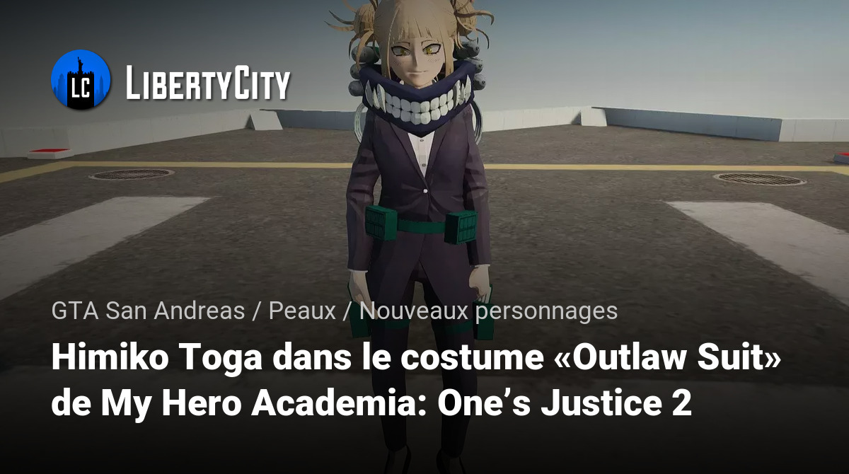 Химико Тога в костюме «Outlaw Suit» из игры My Hero Academia: One’s Justice 2 — это альтернативный облик, который придаёт персонажу более мрачный и стильный вид. Он подчеркивает её хаотичную натуру и контрастирует с её обычно школьным образом.
